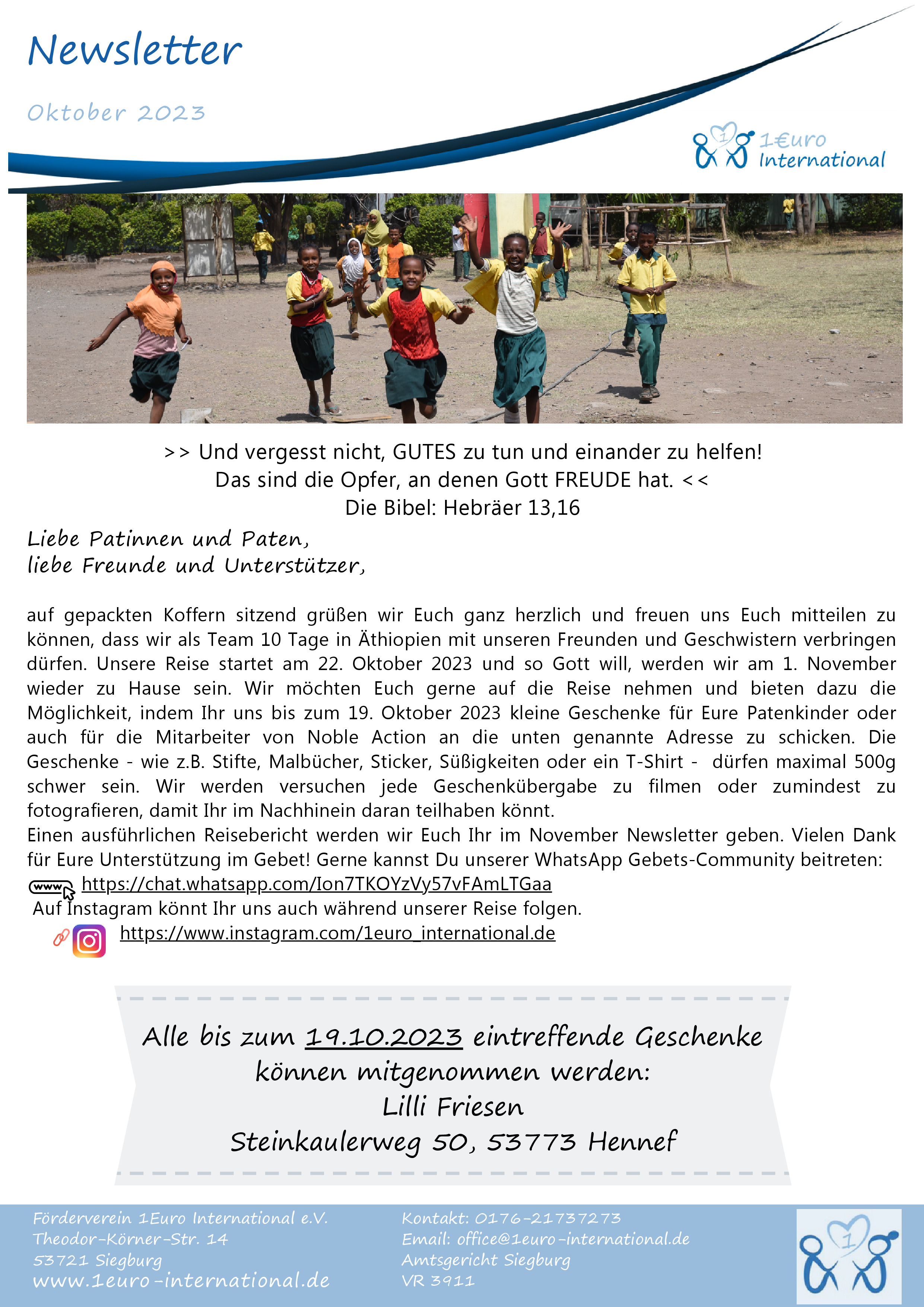 Newsletter Charitytour 1Euro International 2020