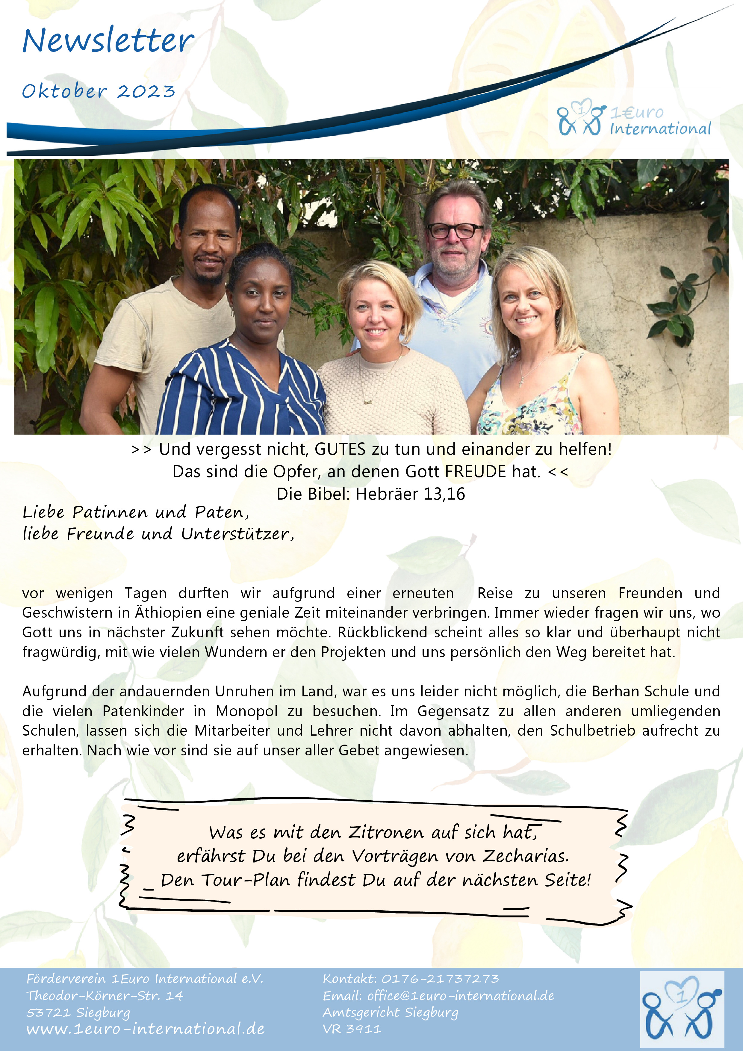 Newsletter Charitytour 1Euro International 2020