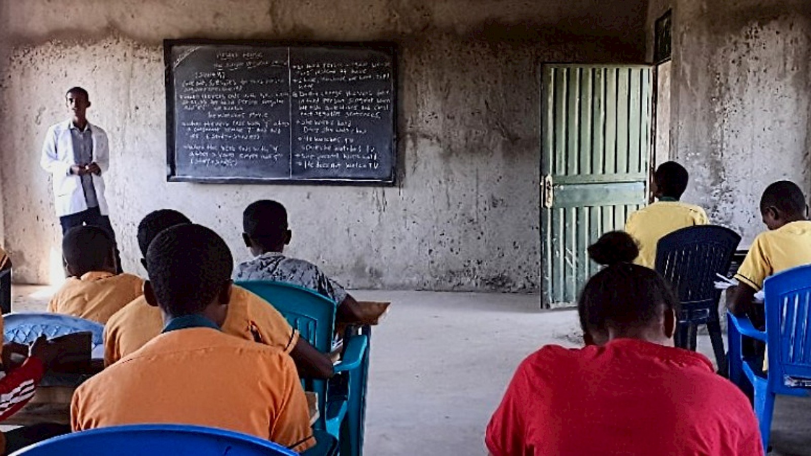 Aufmerksam sitzen die Schülerinnen und Schüler der Klassen 7 und 8 in ihren neuen Räumen.