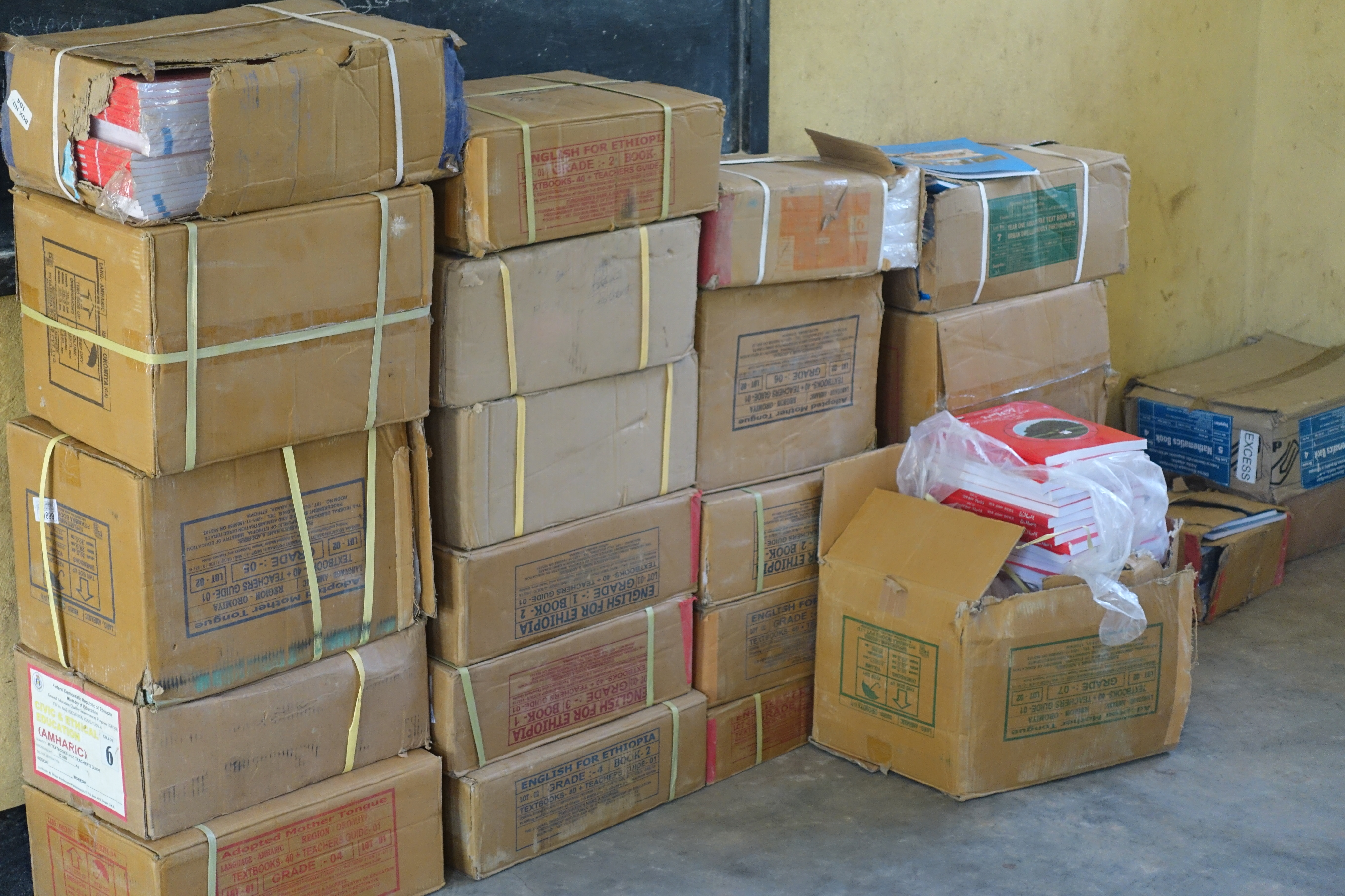 Die Schulbehörden stellen den Schulen und damit den Schülerinnen und Schülern die Schulbücher kostenlos zur Verfügung. Das ist in einem armen Land wie Äthiopien eine Herausforderung für die Behörde. Und da braucht man als Schulleiter Geduld und Hartnäckigkeit, um immer wieder die Bücher einzufordern. Diese Woche sind nun endlich etwa 2000 Bücher verschiedenster Fachbereiche und für verschiedene Klassenstufen in Monopol angekommen. Dank sei dem HERRN! Im Fach Englisch fehlen noch Bücher, aber wir vertrauen auf unseren himmlischen Vater, dass er auch diesen Mangel ausgleichen wird. Ihr dürft gerne dafür beten!